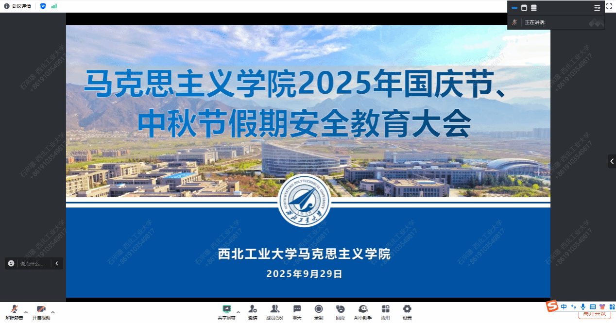 此次安全教育大会的召开,不仅让同学们对假期安全各项要求有了更清晰的认知与更深刻的理解,更切实增强了大家的自我防护意识与风险规避能力,为全体同学平稳、安全、充实度过双节假期筑牢了 “安全屏障”。参会同学纷纷表示,将把会议要求落到实处,严格遵守学校规定,时刻紧绷安全之弦,切实保障自身假期安全。