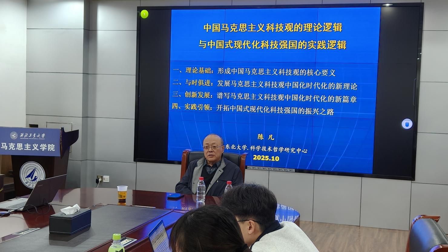 10月10日下午,我校“翱翔灵犀学术殿堂”顺利举行,原国务院学位委员会哲学学科评议组成员、东北大学科学技术哲学研究中心主任、教育部“985工程”科技与社会(STS)哲学社会科学创新基地首席教授、国家社科基金重大项目首席专家陈凡教授应邀来到西北工业大学马克思主义学院,为我校师生带来主题为《中国马克思主义科技观与中国式现代化科技强国》的学术报告。报告由马克思主义学院副院长张云龙教授主持,来自全校不同学院及专业的师生参与了本次报告会。