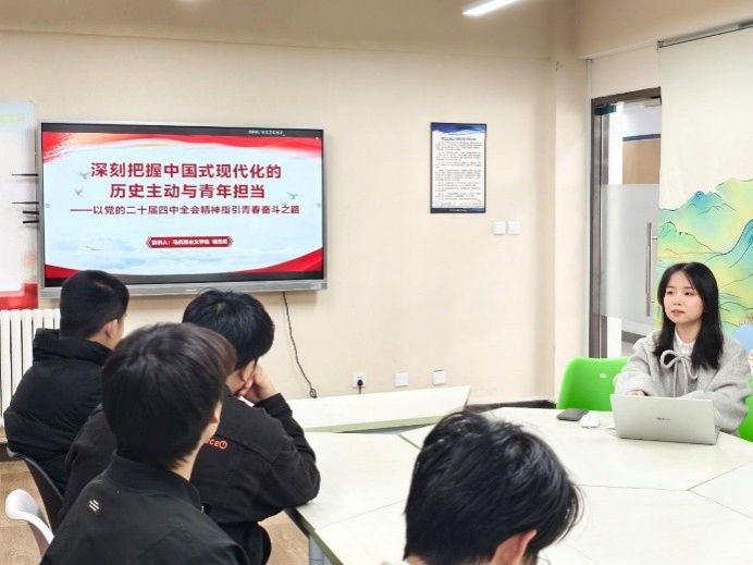 在活动第一阶段,马克思主义学院青马先锋学生宣讲团成员刘佳彤、杨思羽先后围绕党的二十届四中全会精神开展理论宣讲,呼吁青年学子运用专业知识为国家和社会做出贡献,成长为有理想、敢担当、能吃苦、肯奋斗的新时代好青年。理论宣讲后,在场学生纷纷表示,作为西工大学子,我们要以马克思主义为思想引领,用先进理论指导学术研究,为学校“一十百千”目标的实现贡献青春力量。”