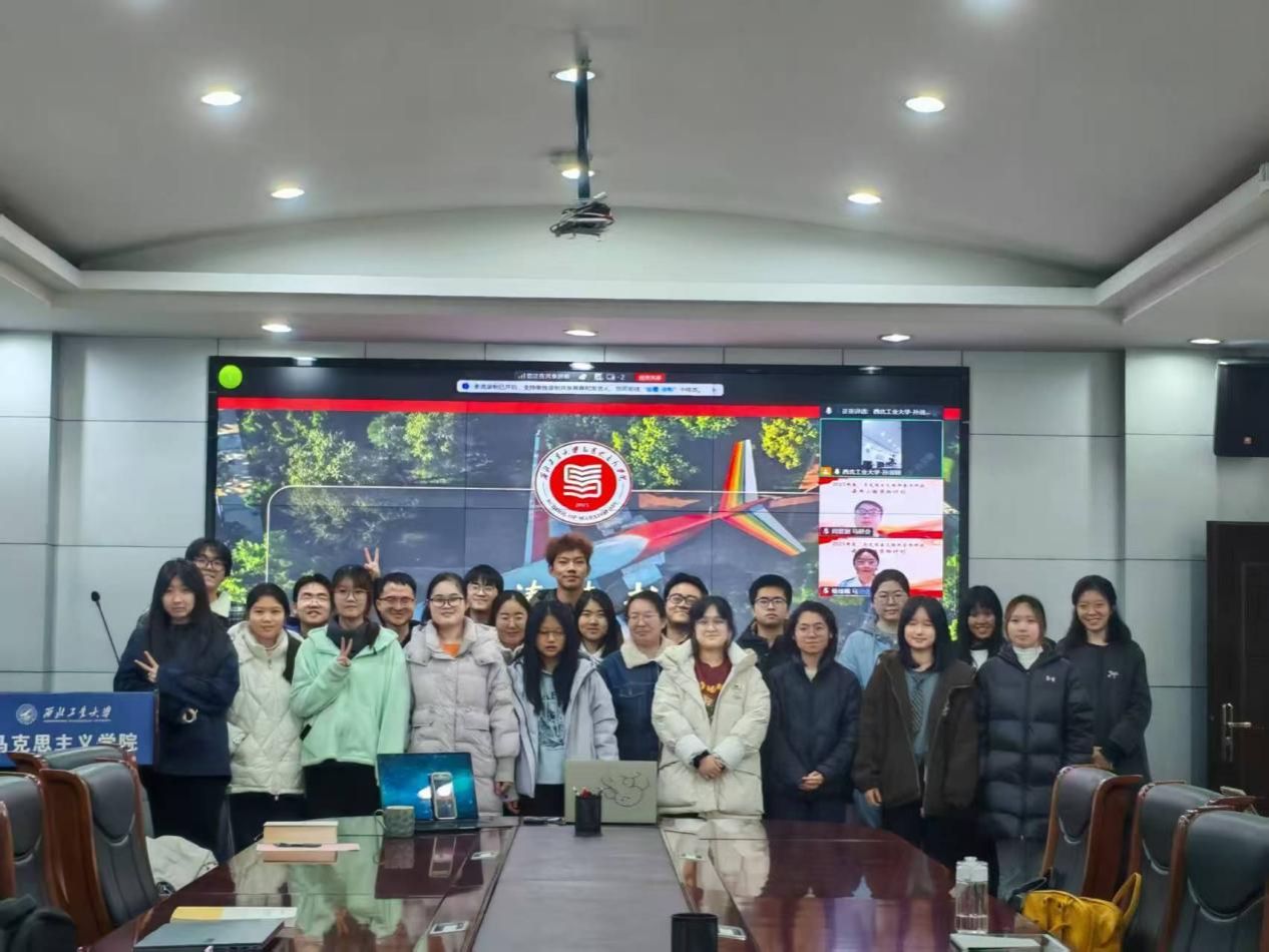 2025年12月6日晚,中国高等教育学会马克思主义研究分会2025年度“马克思主义经典著作研读”资助计划——西北工业大学马克思主义学院“松涛读书会”举行本学期第六次活动。本次活动特邀中国高等教育学会马克思主义研究分会2025年度“马克思主义经典著作研读”资助计划的督导员闫昱澍、杨佳帼参与,共同研读《德意志意识形态》中的《关于费尔巴哈的提纲》部分,并就类本质、共同体及所有制等核心概念进行了深入探讨。