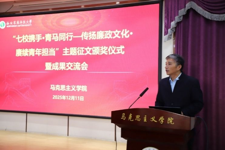 为深化廉政文化建设,凝聚青年担当力量,2025年12月11日,马克思主义学院党委副书记耿云辉带队,携学院获奖代表前往西北农林科技大学,参加陕西七所高校马克思主义学院“传扬廉政文化·赓续青年担当”主题征文颁奖仪式暨成果交流会。
