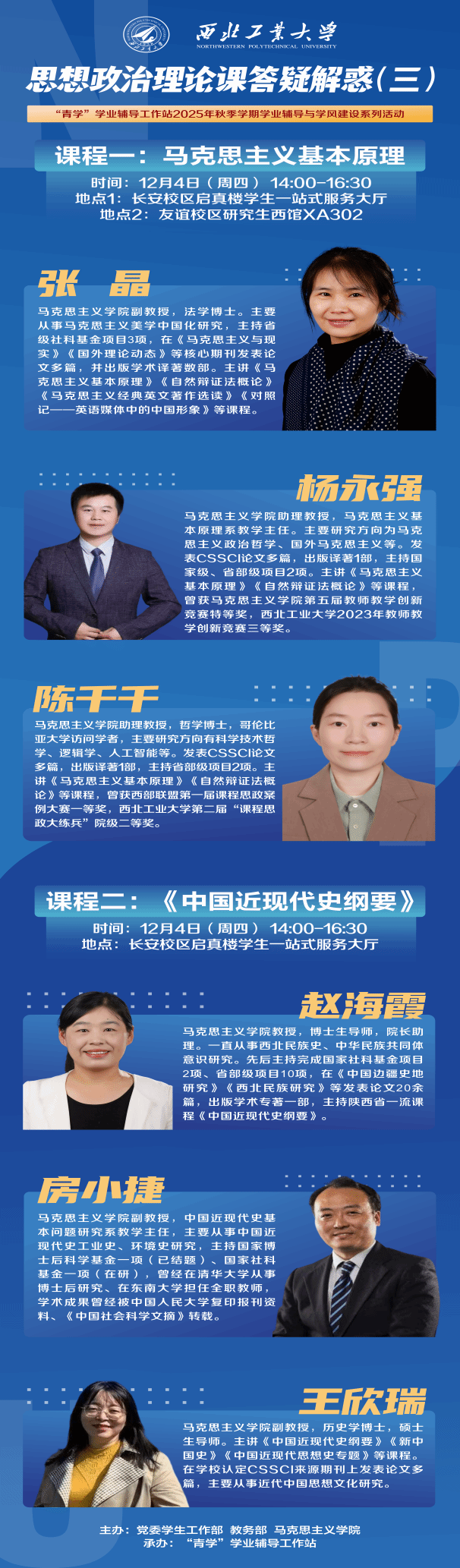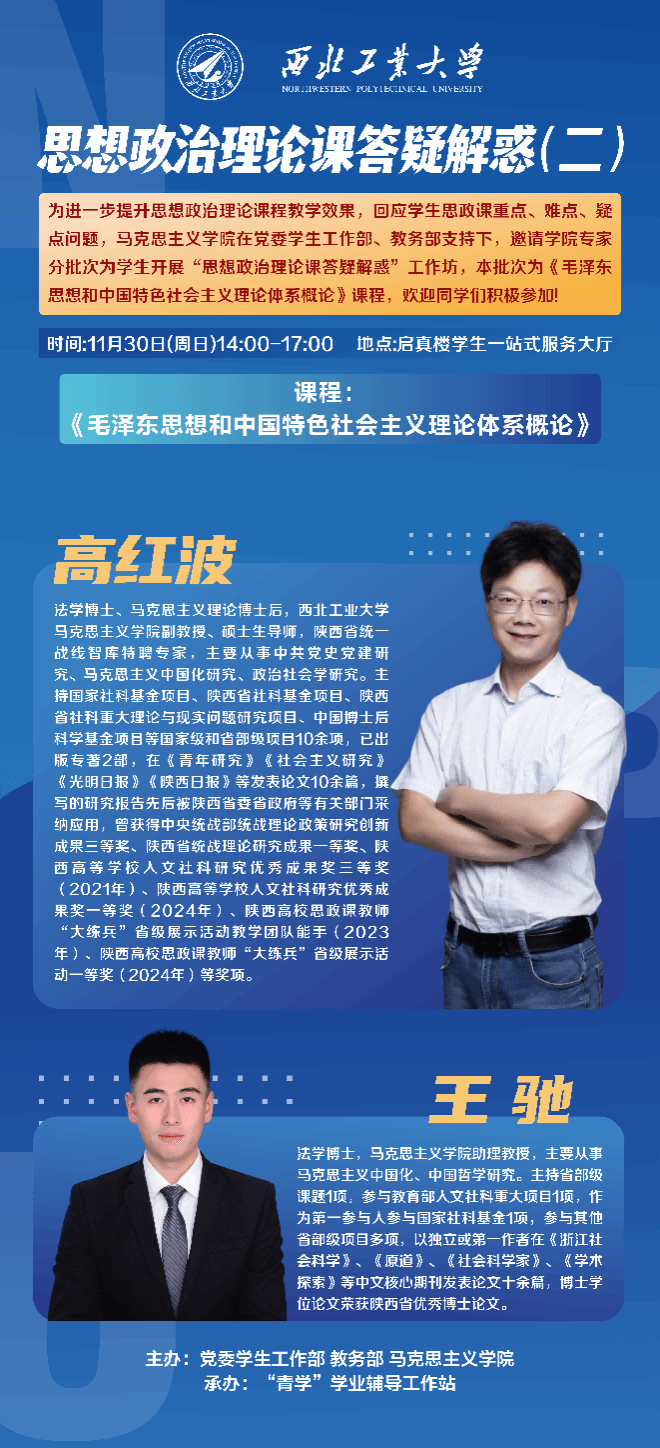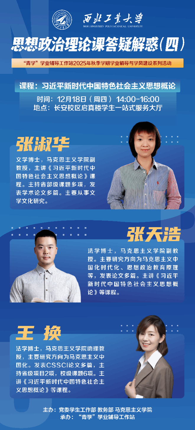 为进一步提升思想政治理论课程教学效果,精准回应学生在思政课学习中遇到的重点、难点与疑点问题,马克思主义学院在党委学生工作部、教务处的支持下,邀请学院专家分批次为学生开展“思想政治理论课答疑解惑”工作坊。