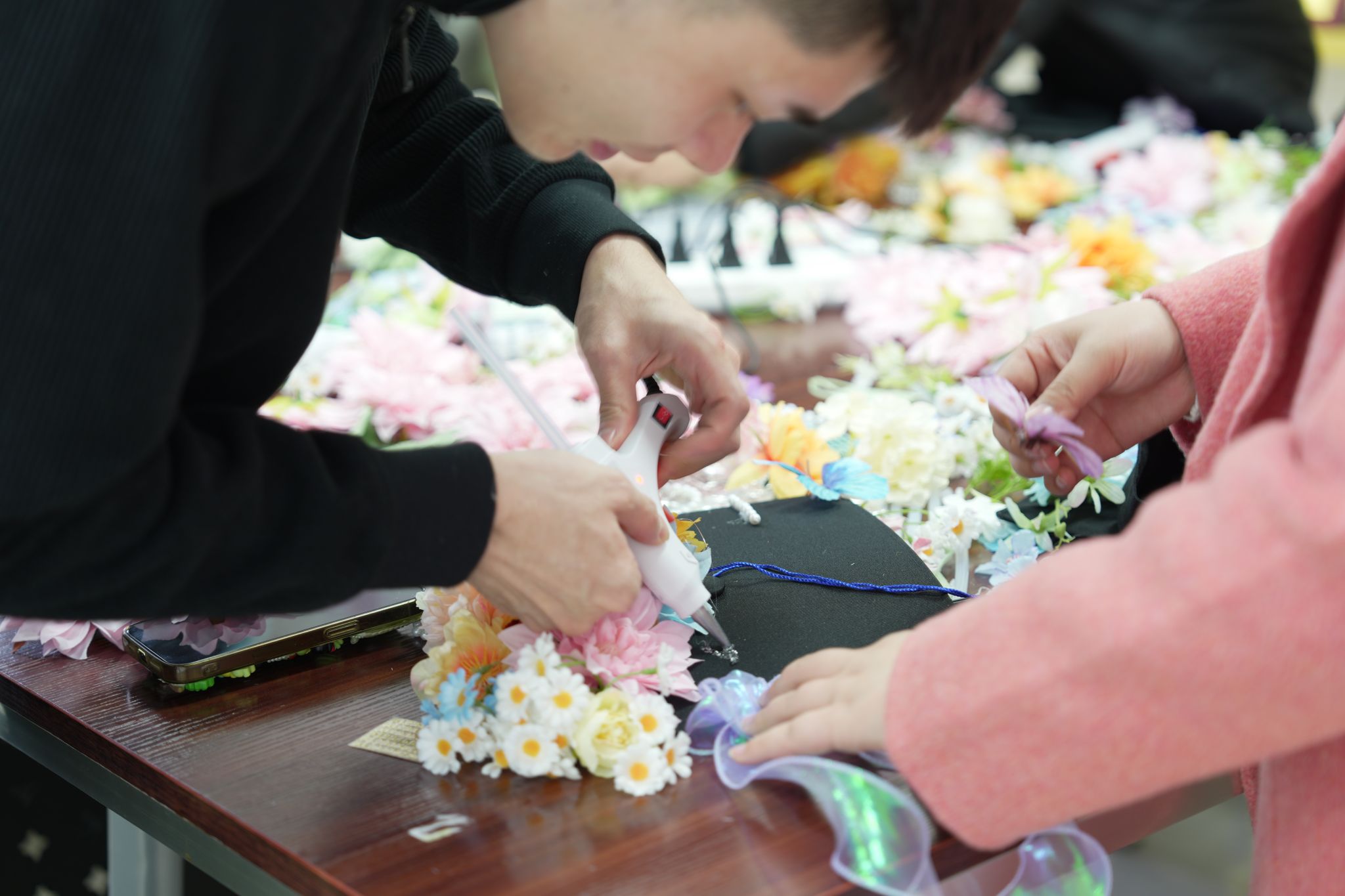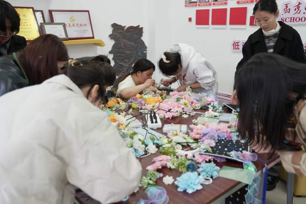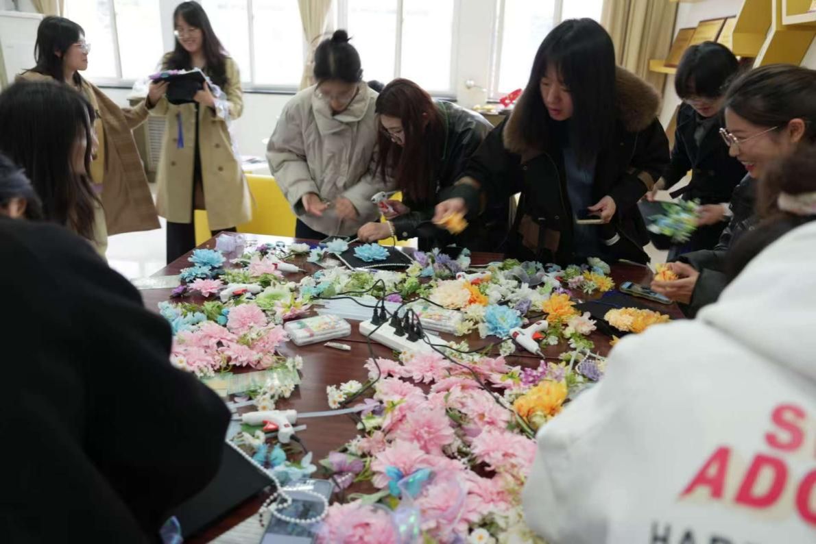 活动室里暖意融融、笑语不断,每一朵繁花都寄托着同学们对未来的美好期许。