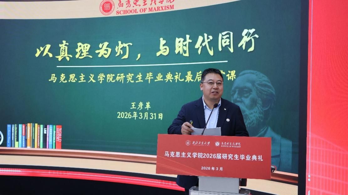 从庄严隆重的毕业典礼、导师情深意切的毕业寄语,到学院书记透彻恳切的“毕业生最后一堂课”,马克思主义学院通过一系列精心安排的活动,为2026届研究生送上了真挚的祝福。愿全体毕业生满载着学院的殷切关怀与嘱托,秉承“公诚勇毅”校训、弘扬“三实一新”校风,坚守信仰、勇担使命,投身强国建设与民族复兴的伟大实践,在新的人生征程中继续彰显马克思主义学院学子的思想底色与时代担当,续写属于西工大人的华彩篇章!