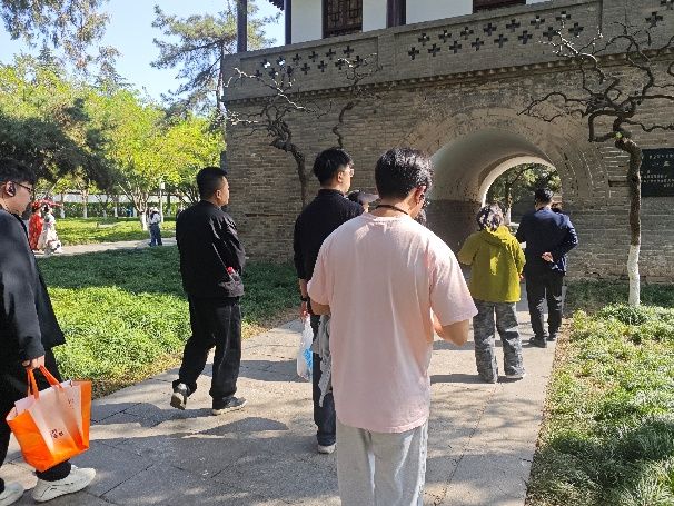 小雁塔巍然屹立,历经千年风雨与地震考验而不倒,其背后蕴含的建筑智慧与坚韧精神令大家赞叹不已。在荐福寺与白衣阁前,讲解员细致讲述了寺院的历史沿革与佛教文化在长安的传播历程。党员们在晨钟暮鼓的回响中,仿佛穿越时空,感受到古都西安深厚的文化积淀与历史沧桑。