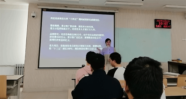 同期,我校马克思主义学院贺苗教授受邀赴西北农林科技大学、西安明德理工学院开展“金课”巡讲,围绕“科技报国的使命担当”展开授课,以当代科技工作者卓越贡献为切入点,深入阐释科技报国的丰富内涵,引导青年学生深刻认识科技自立自强的极端重要性,激励大家在强国建设、民族复兴新征程中勇担时代使命。