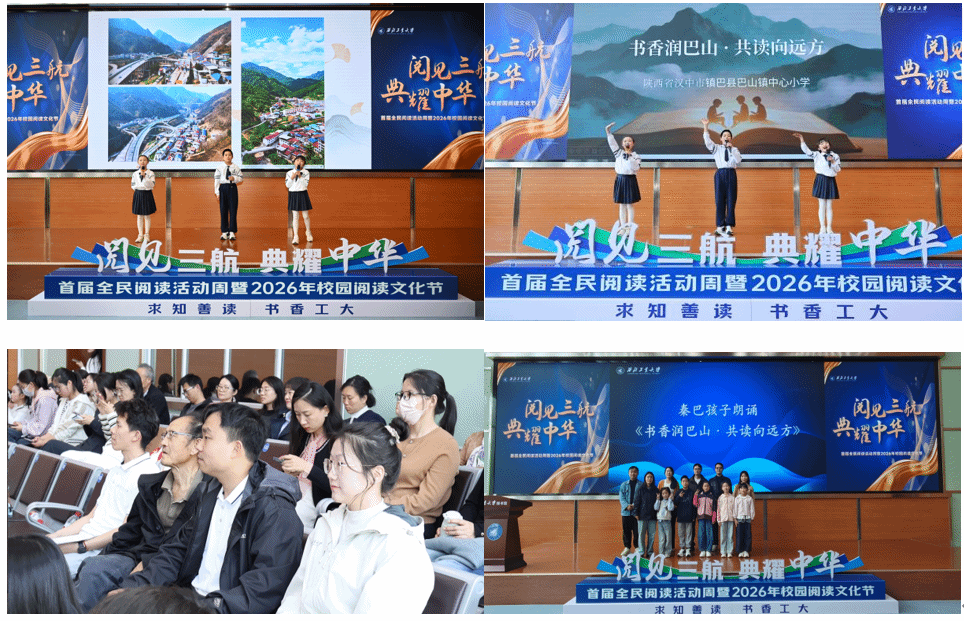 23日上午,小朋友们受邀参加2026年西北工业大学校园阅读文化节开幕式,我院樊明方教授作为关工委“五老”宣讲员、阳光小马志愿服务队指导教师,与志愿者们也共同参加了开幕式,观看了小朋友们带来的诗朗诵《书香润巴山,共读向远方》。在诗朗诵中,孩子们用稚嫩而坚定的声音讲述志愿服务队传递书香的温暖故事,赢得全场热烈掌声。