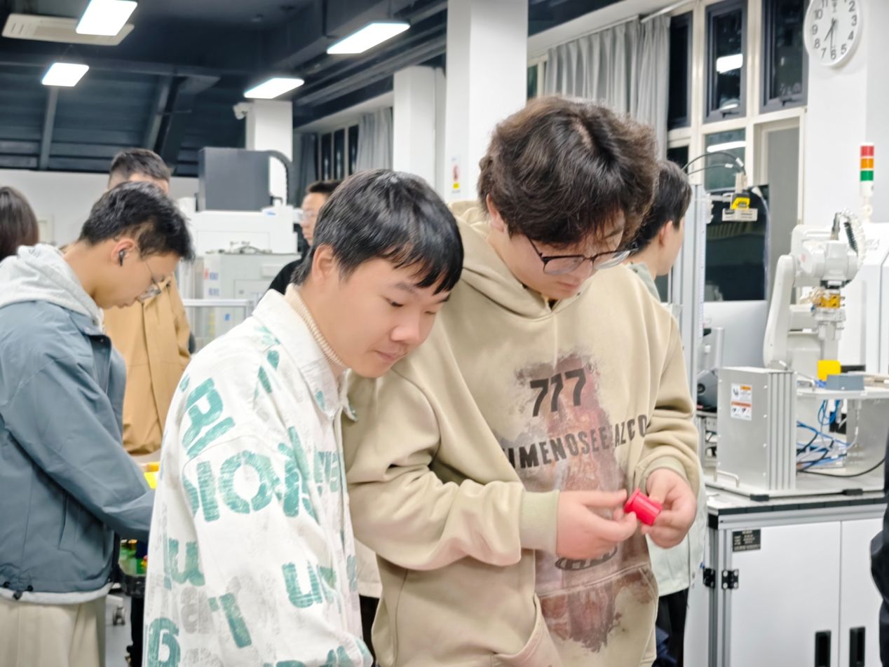 随后带领学员系统参观创新实践社区,逐一讲解装配虚拟仿真实验室、智能制造示范中心等工作室的设备及其用途,并对“无人飞行器实验室”“机器人创新实践工坊”“创意孵化空间”等专项平台的功能定位及运行模式进行详细介绍,让同学们直观感受到科技创新实践场域的独特魅力,进一步激发了大家对工程实践的探索热情。通过详细解读多个创新项目成果转化的真实案例,梁老师生动论证了理论知识转化为工程应用的可行路径,有效增强了同学们对专业发展前景的信心。