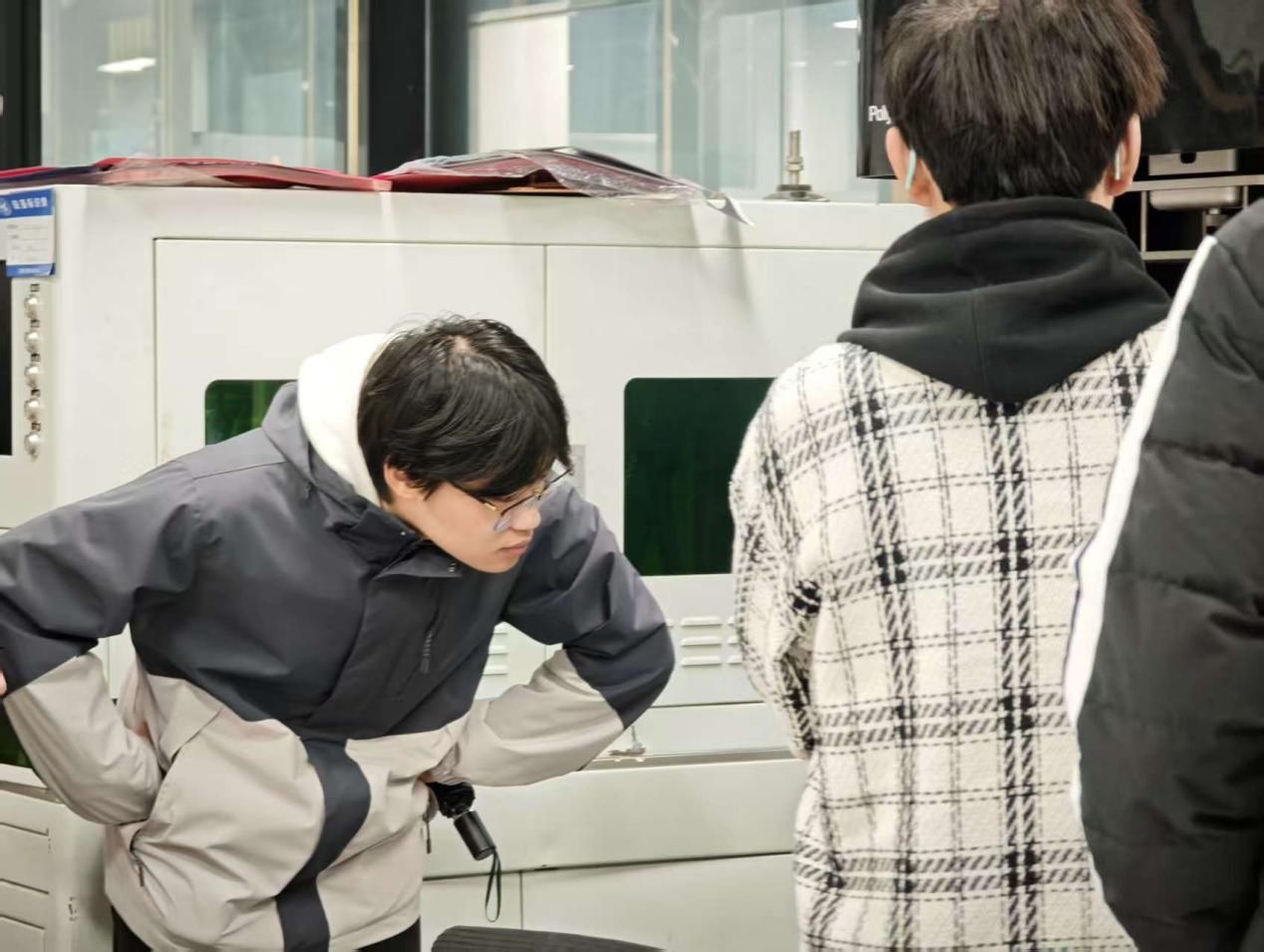 机电学院吴睿琦:作为产品设计专业学生,参观工程实践训练中心时,我看到书本上的设计理论在3D打印、激光切割等设备中化为具象的模型,在VR虚拟操作、人工智能与无人机实验室里,见证了设计从创意蓝图到实体产品的落地过程,更看到学长学姐的作品在大赛中展现风采。这让我深刻体会到产品设计不仅是美学与功能的结合,更是连接创意与制造、虚拟与现实的纽带。我渴望在后续学习中,主动参与实操,将专业知识转化为设计能力,在“三航”等高端制造领域的产品设计中贡献创意,让自己的设计从图纸走向现实,助力产业发展。