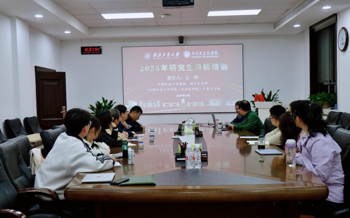 为了加强研究生导师队伍建设,全面夯实导师第一责任人职责,提升研究生导师的业务素质和指导水平,马克思主义学院于10月17日开展2025年研究生导师培训。本次培训邀请《中国矿业大学学报(社会科学版)》执行主编王锋教授作专题报告,学院研究生导师及部分研究生参会,培训由学院副院长张云龙主持。